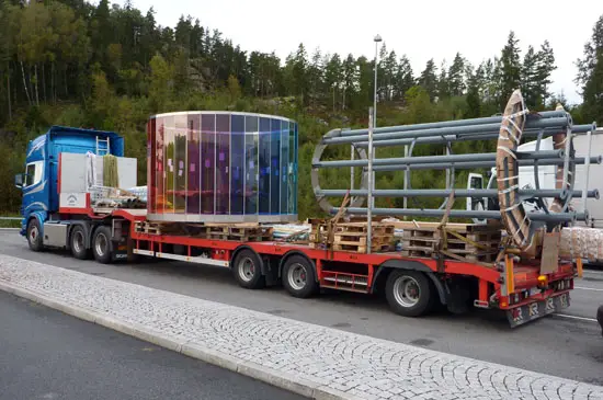Vi kan med vår kranbil och släp även leverera varor och konstruktioner direkt till kunden.